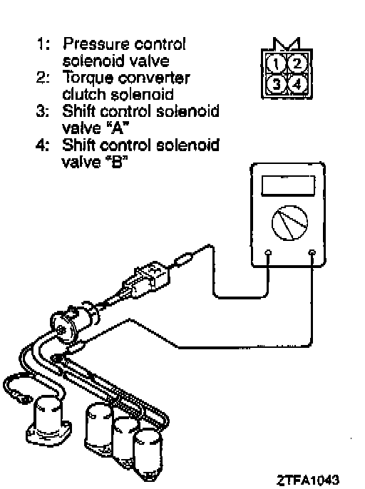 Pressure control solenoid valve: Approximately 3 ohms