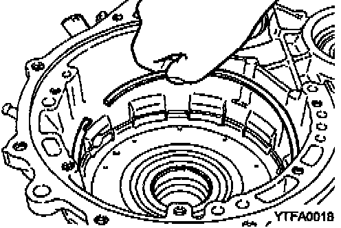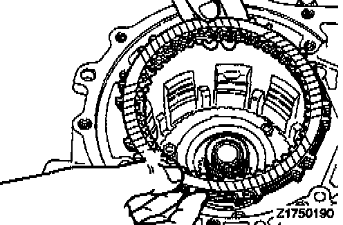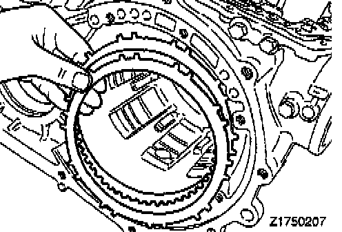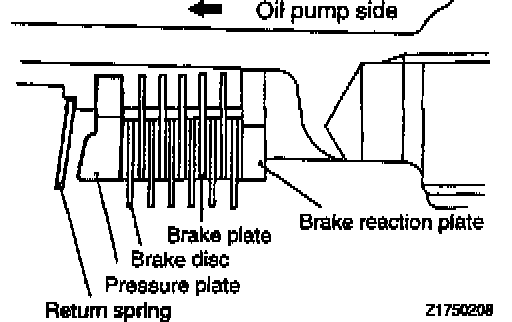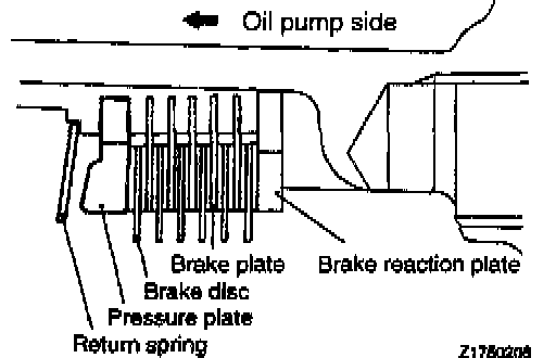 CAUTION: Blow off automatic transmission fluid from the plates and discs with low-pressure compressed air.