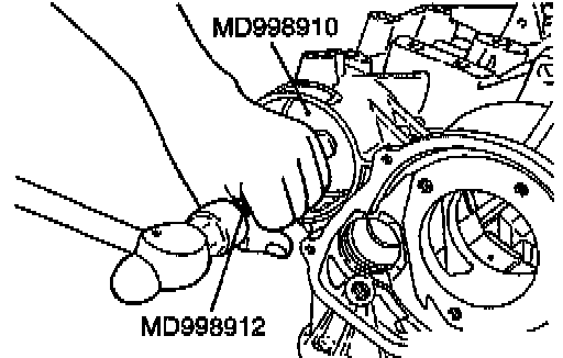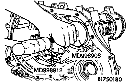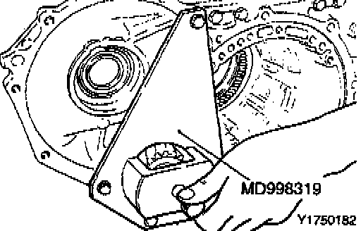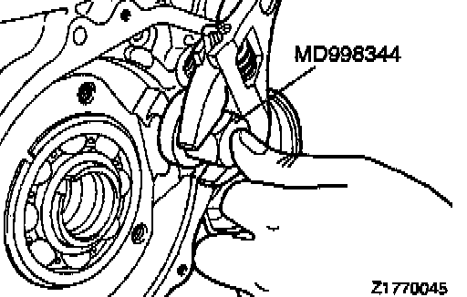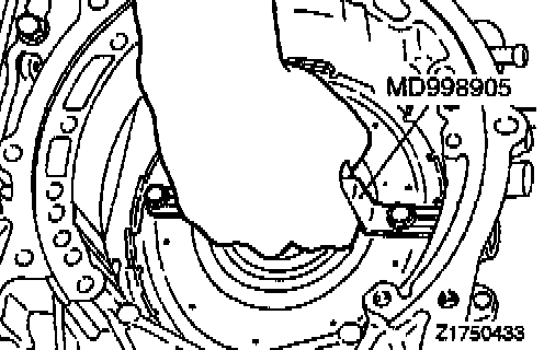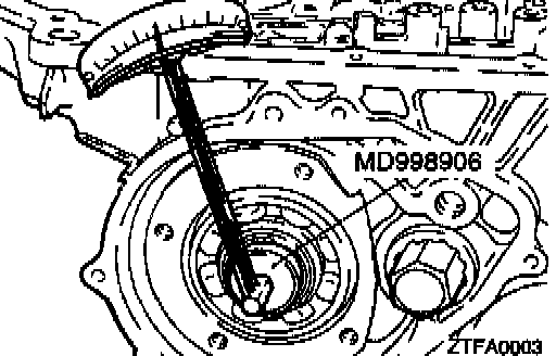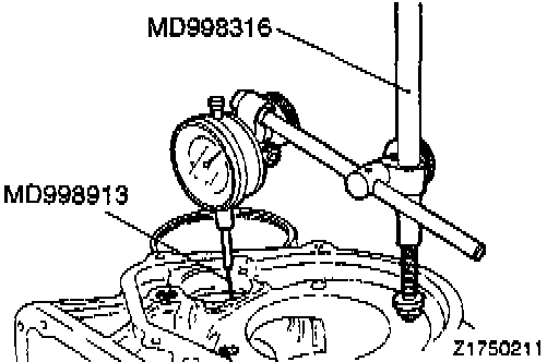 Make sure that the dial indicator rod (MD998913-01) is inserted into the transfer idler shaft hole, contacting the brake reaction plate at a right angle.