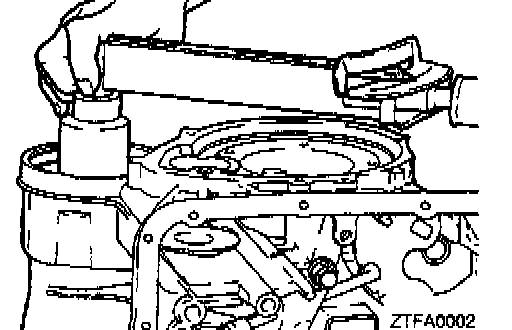 18. Insert the special tool into the output flange and measure the preload using a low reading torque wrench. Adjust the preload to the standard value by tightening or loosening the transfer idler shaft.