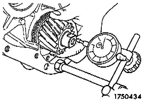 h. Mount the special tool and dial indicator on the rear side of the transaxle case.