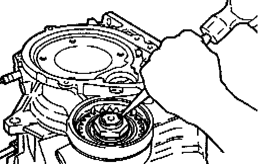 42. When putting the kickdown drum in the kickdown band, engage the splines of the kickdown drum with those of the reverse sun gear. Place the kickdown band on the kickdown drum and tighten the kickdown servo adjusting screw to keep the band in position.