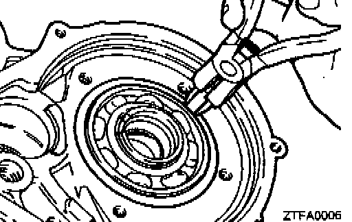 2. Using a special tools, drive the transfer shaft bearing outer races into position.