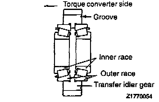 15. Install the bearing outer race and inner races in the transfer idler gear.