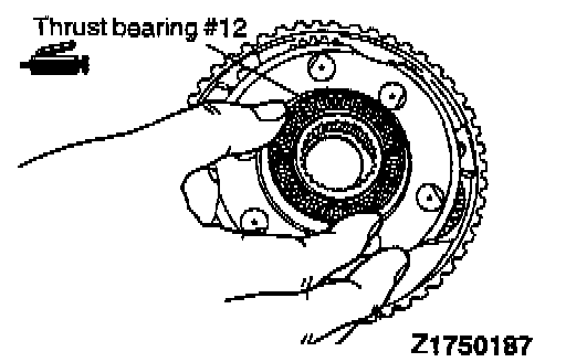 23. Apply petrolatum jelly to thrust bearing #12 and secure the bearing on the planetary carrier.