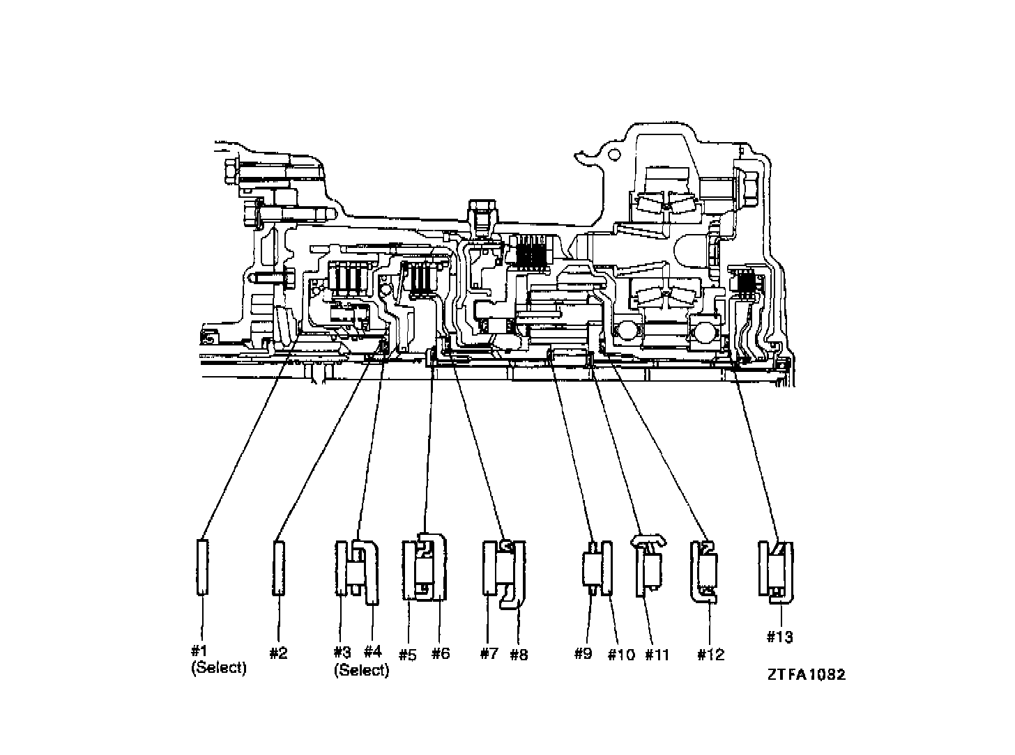 9. Measure the end play while sliding the transfer shaft in and out, and select a spacer to obtain the specified end play.