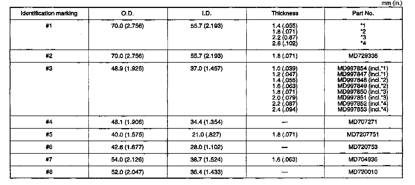 5. Install the thickest spacer [1.80 mm (0.0709 inch)].