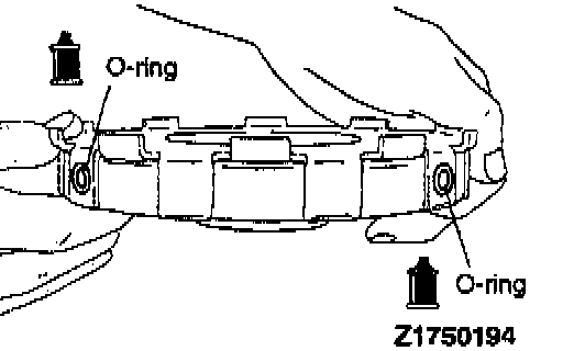 d. Install the two O-rings removed during disassembly and coat them with automatic transmission fluid.