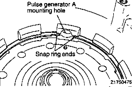 34. Install the snap ring to secure the center support. The snap ring ends should not interfere with the pulse generator mounting hole.