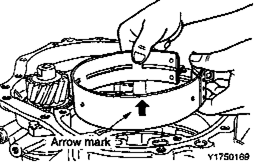 NOTE: Install the band with the arrow mark facing toward oil pump.
