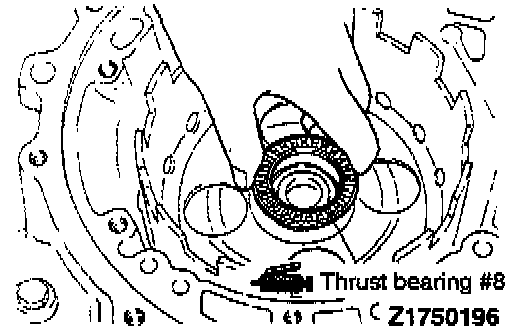 43. Apply petrolatum jelly to thrust bearing #8 and attach the thrust bearing to the kickdown drum.