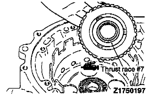 44. Apply petrolatum jelly to thrust race #7 and attach the thrust race to the rear clutch hub.
