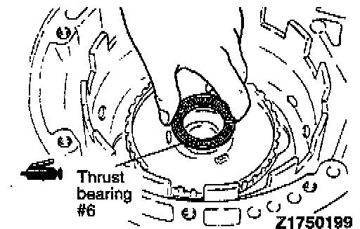 46. Apply petrolatum jelly to thrust bearing #6 and attach it to the clutch hub.