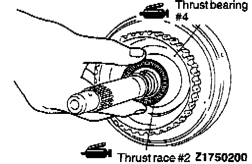 47. Apply petrolatum jelly to thrust washer #2 and thrust bearing #4 and attach the washer and bearing to the rear, clutch assembly.