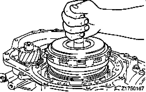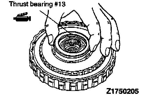70. Install a new O-ring in the groove of the end clutch cover. Check the bearing for smooth rotation and replace it if defects are evident. Apply an ample amount of automatic transmission fluid to the bearing.