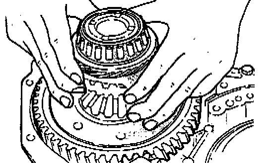61. Place the spacer which was selected in Step (60) and the outer race on the converter housing.