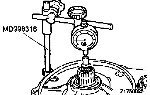 55. Measure the end play of the input shaft. If the measurement is out of the standard value, replace thrust race #3 and thrust washer #1 to meet the standard value.