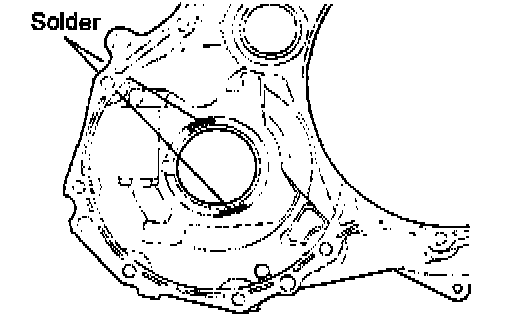 56. Place two pieces of approximately 10 mm (0.39 inch) long and 2.5 mm (0.063 inch) diameter solder at the locations shown on the converter housing and assemble the outer race.