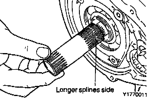 65. Install the end clutch shaft, inserting the end that has the longer splines first.