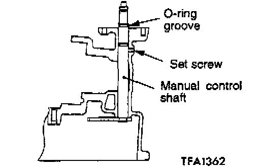 73. After installing a new O-ring on the manual control shaft assembly, draw the shaft back into the case, then install the set screw and gasket. Tighten the detent plate mounting bolt to the specified torque.