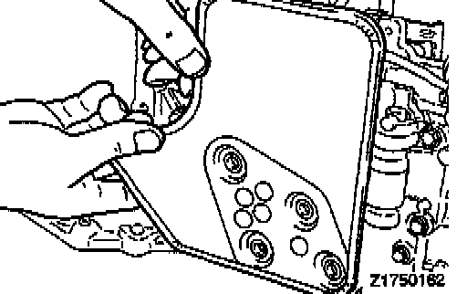 82. Clean the gasket surfaces of the transaxle case and oil pan. Install a new oil pan gasket and then the oil pan by tightening the 12 bolts to the specified torque.