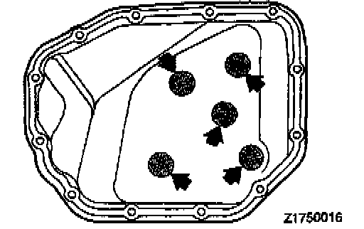 81. Install five magnets in the five depressions provided inside the oil pan. Be sure to remove metal particles from the magnets and clean the inside of the oil pan beforehand.