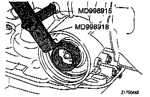 CAUTION: When unlocking is carried out, apply equal force to both special tools to loosen.