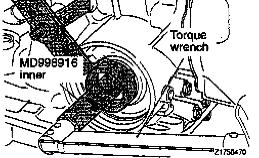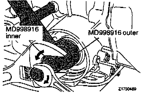 d. Fit torque wrench to the special tool (inner) to tighten it to a torque of 10 Nm (7.2 ft. lbs.) and loosen. Repeat this sequence two times before tightening the special tool (inner) to 5 Nm (3.6 ft. lbs.) torque. Then back off the special tool (inner) 21/2 to 23/4 turns.