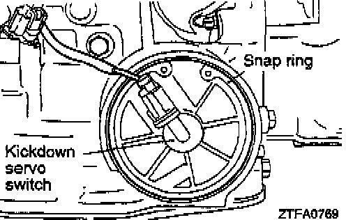 84. Set a new D-ring in the kickdown servo switch, push the switch into the case and secure it with the snap ring.