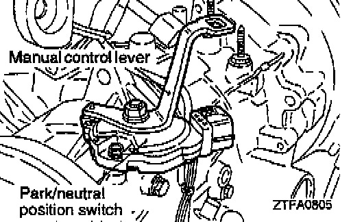 85. Install the park/neutral position switch and manual control lever, and tighten the manual control lever nut to the specified torque.