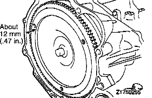 The torque converter has been properly installed when the measurement is about 12 mm (0.47 inch)