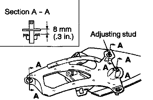Set the length of the adjusting stud to the dimension shown in the illustration to make adjustment of the quarter window glass easier.