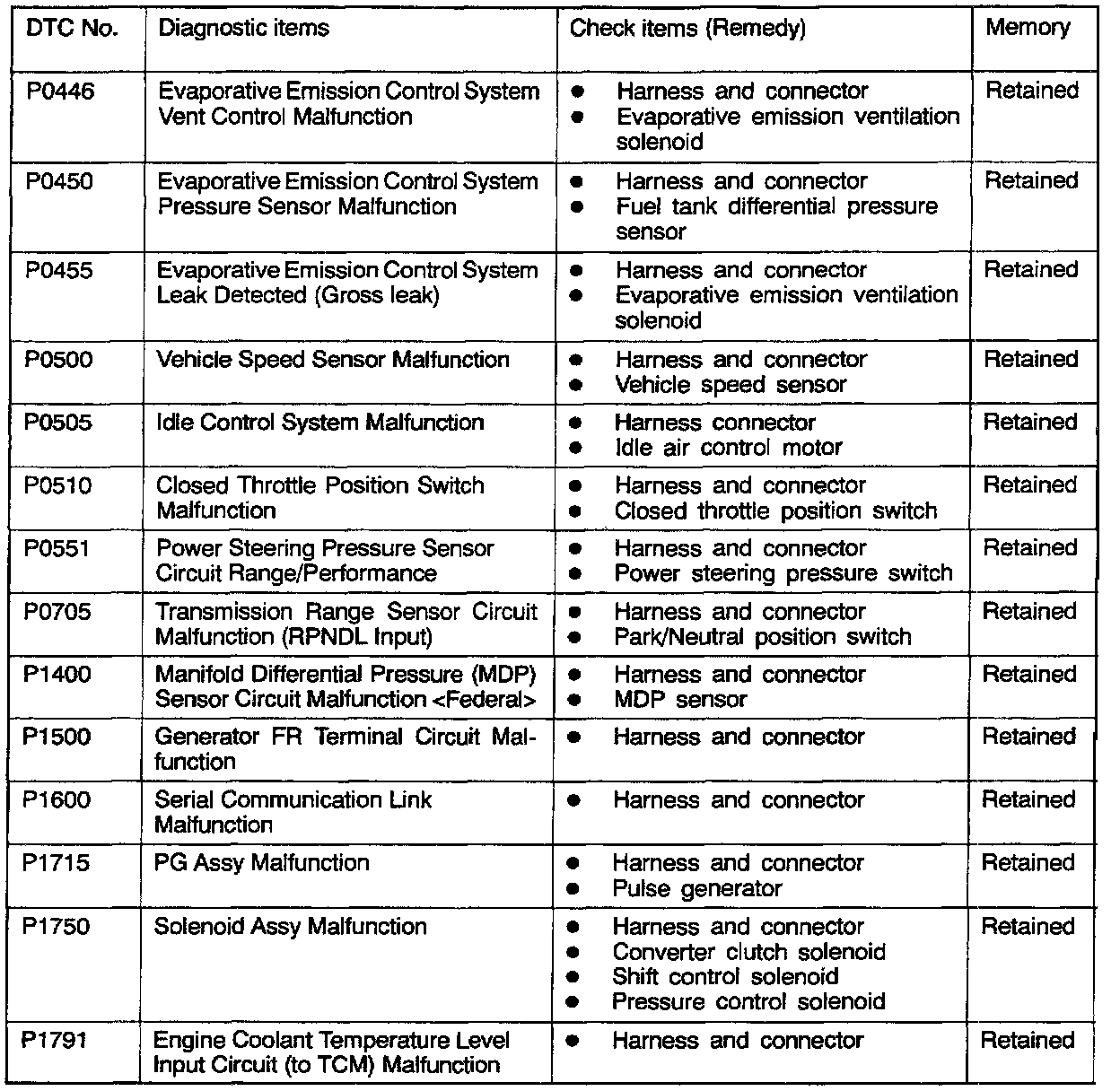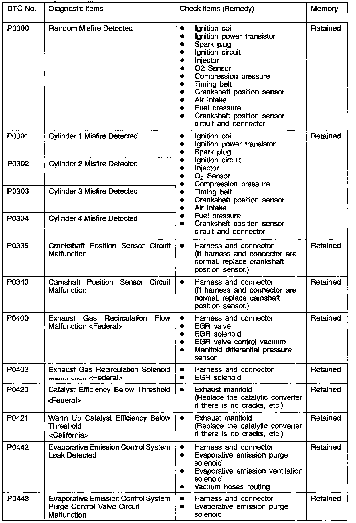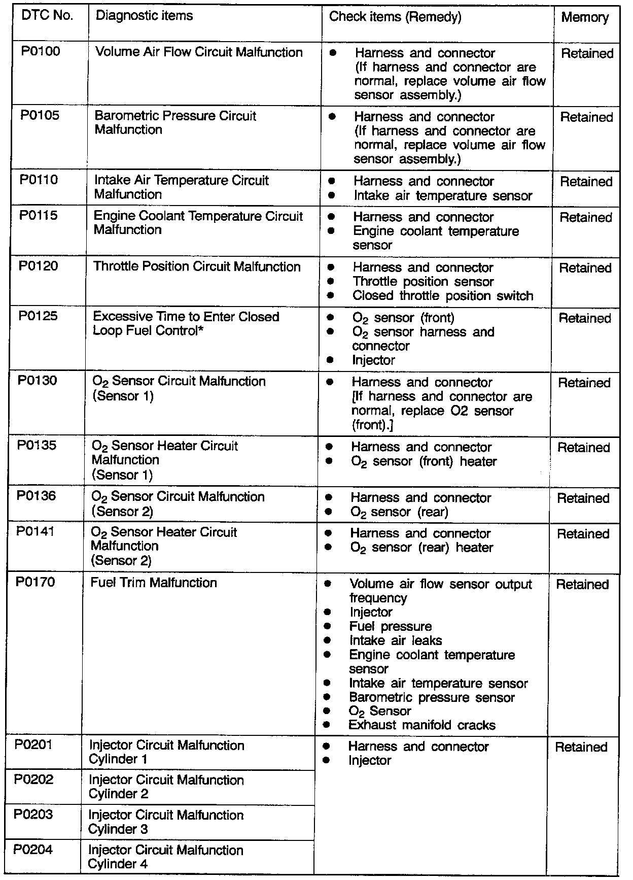 2. After the ECM detects a malfunction, a diagnostic trouble code is recorded when the engine is next started and the same malfunction is re-detected. However, for items marked with a "*", the diagnostic trouble code is recorded on the first detection of the malfunction.