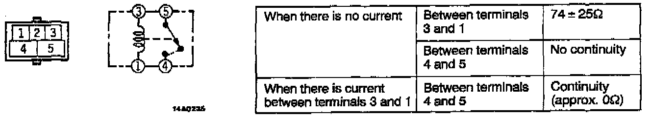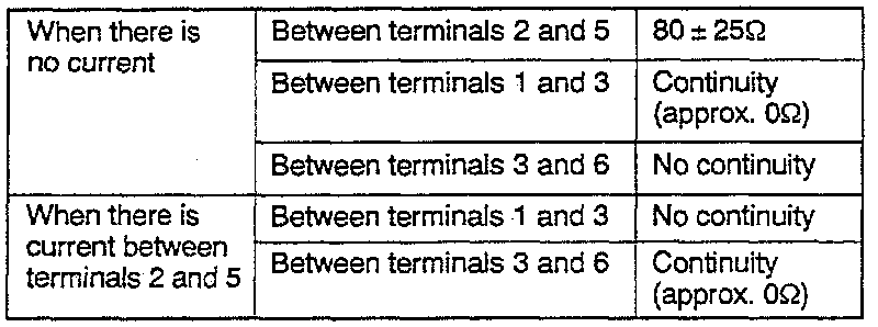 Check for continuity between the terminals of the relay with and without power as shown in the chart overleaf.
