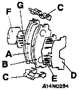 1. Do not deposit grease or other dirt on pad or brake disc friction surfaces.