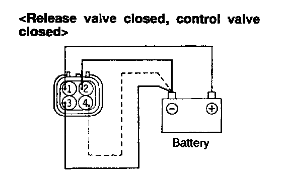 4. Check to be sure that the vacuum gauge shows a reading of 53 kPa (398 mmHg, 15.7 in.Hg) or more when terminal (4) is connected to the battery (-) terminal.