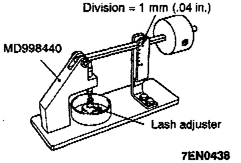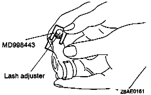 (3) Remove the special tool and press the plunger. If the plunger is hard to be push in, the lash adjuster is normal. If the plunger can be readily pushed in all the way, bleed the lash adjuster again and test again. If the plunger is still loose, replace the lash adjuster.