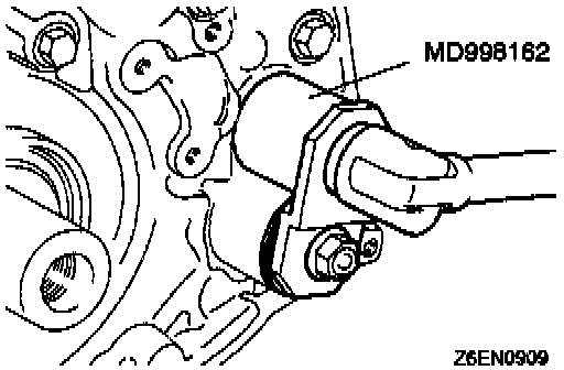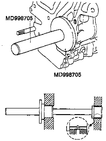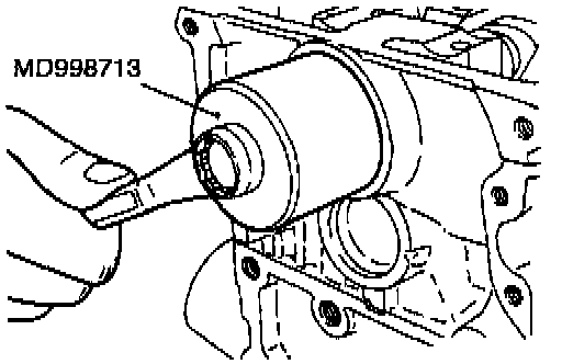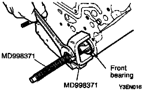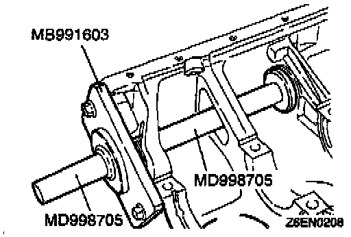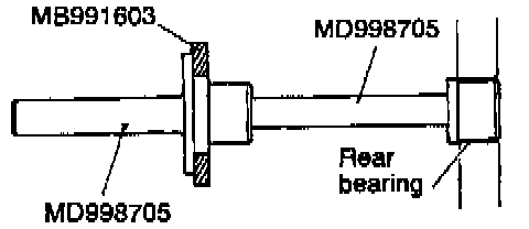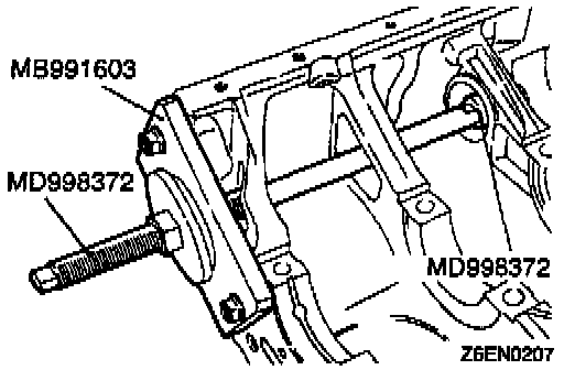 NOTE: When removing the left counterbalance shaft rear bearing, attach the special tool (MB991603) to the front of the cylinder block.