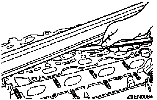(1) Check the cylinder head gasket surface for flatness by using a straightedge and thickness gauge.
