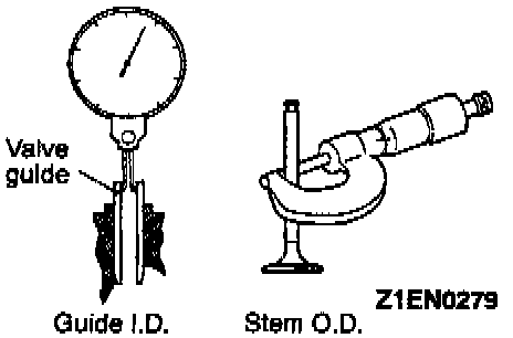 (1) Measure the clearance between the valve guide and valve stem. If the limit is exceeded, replace the valve guide or valve, or both.