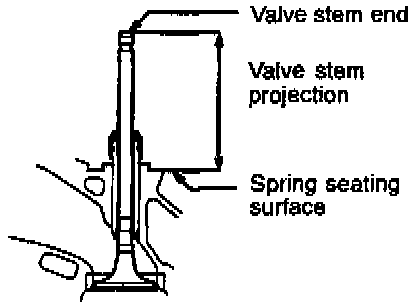(1) Assemble the valve, then measure the valve stem projection between the end of the valve stem and the spring seating surface. If the measurement exceeds the specified limit, replace the valve seat.