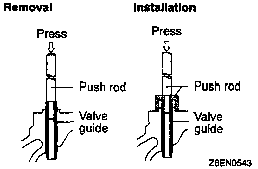 (1) Using the push rod and a press, remove the valve guide toward cylinder head gasket surface.