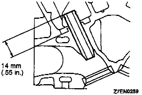 (3) Press-fit the valve guide until it protrude 14 mm (0.55 inch) from the cylinder head top surface as shown in the illustration.