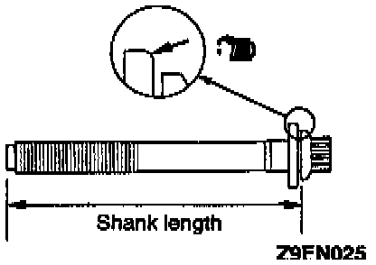 (1) When installing the cylinder head bolts, check that the shank length of each bolt meets the limit. If the limit is exceeded, replace the bolt.