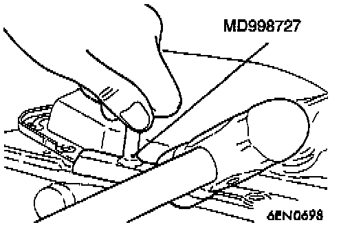 NOTE: Never use a screwdriver or chisel, instead of the special tool, as a deformed oil pan flange will result in oil leakage.