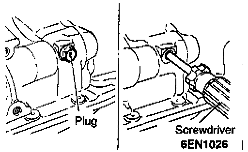 (2) Insert a Phillips screwdriver [shank diameter 8 mm (0.32 inch)] into the plug hole to lock the counterbalance shaft.