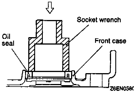 (1) Using the special tool, install the crankshaft front oil seal into the front case.