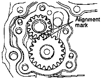 (1) Apply engine oil amply to the gears and line up the alignment marks.