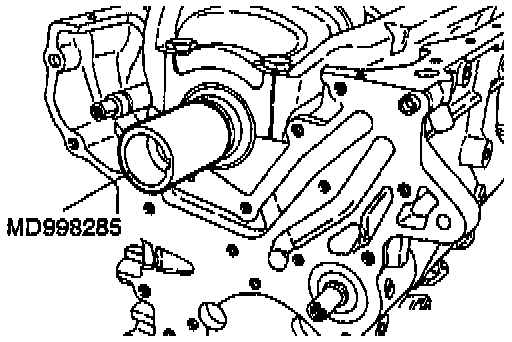 (1) Set the special tool on the front end of crankshaft and apply a thin coat of engine oil to the outer circumference of the special tool to install the front case.