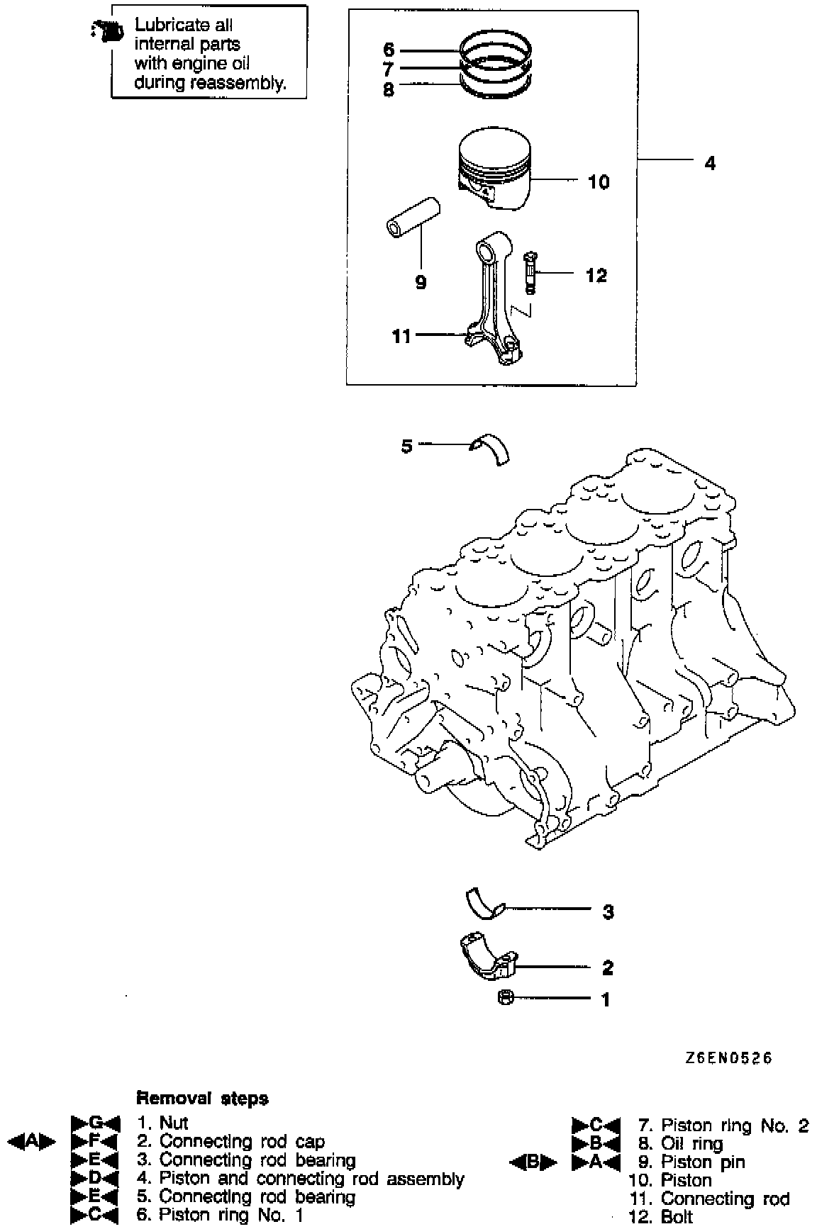 (1) Mark the cylinder number on the side of the connecting rod big end for correct reassembly.